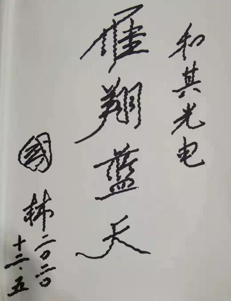 圖十  國林部長題詞“和其光電,雁翔藍天”
